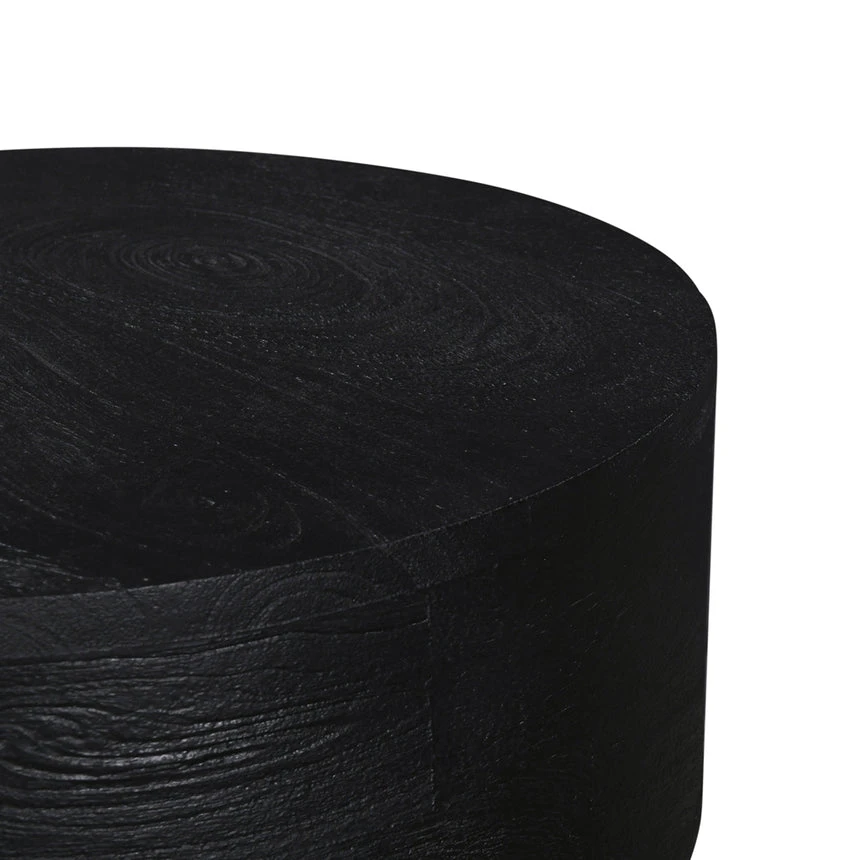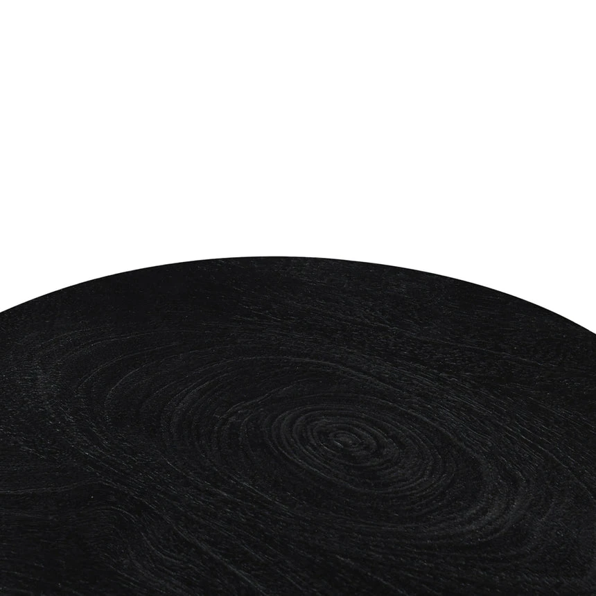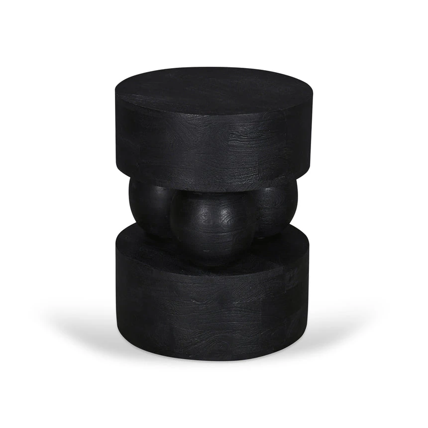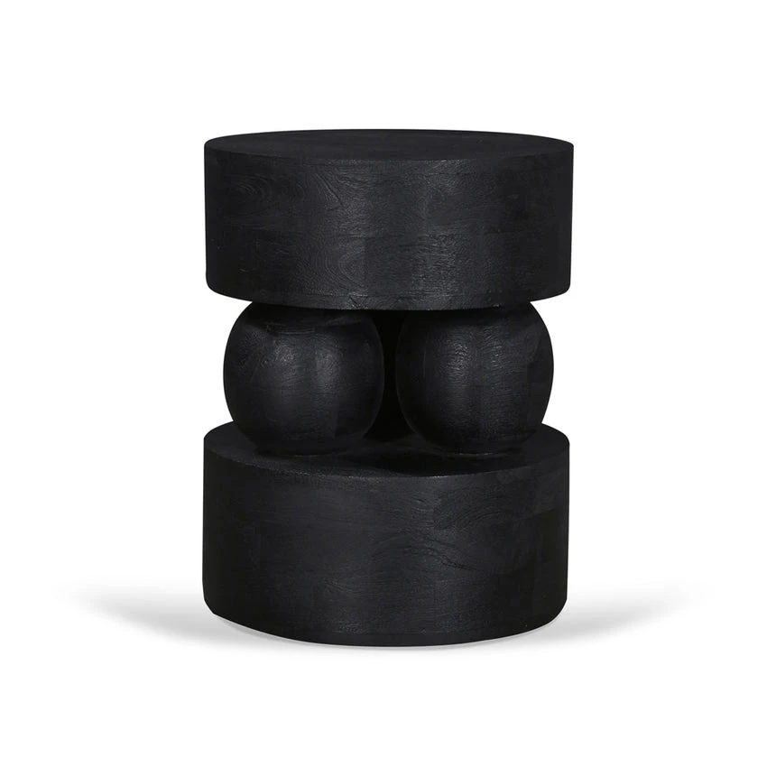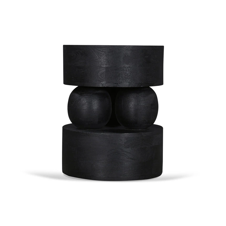Mango wood construction Black finish Wood grain patterns Geometric design Stylish display surface Weight Capacity: 10 kg Minor assembly required