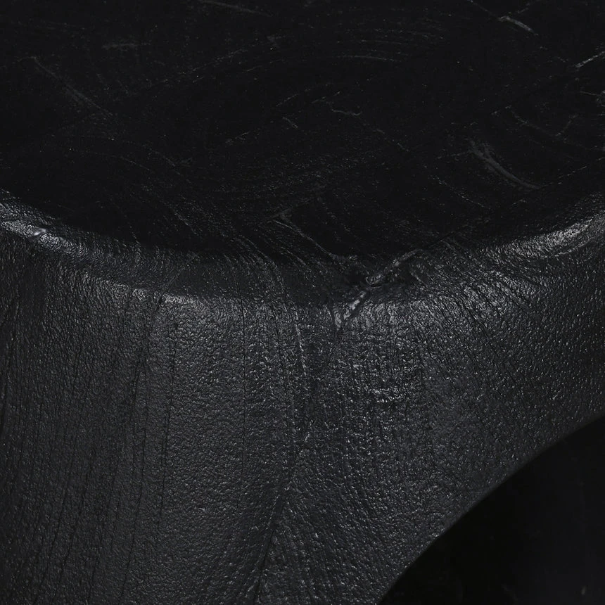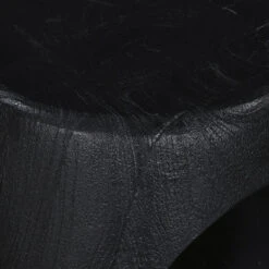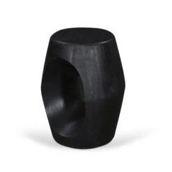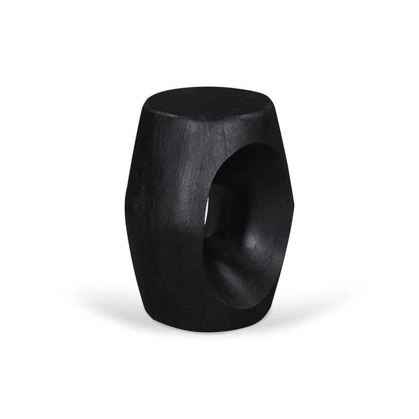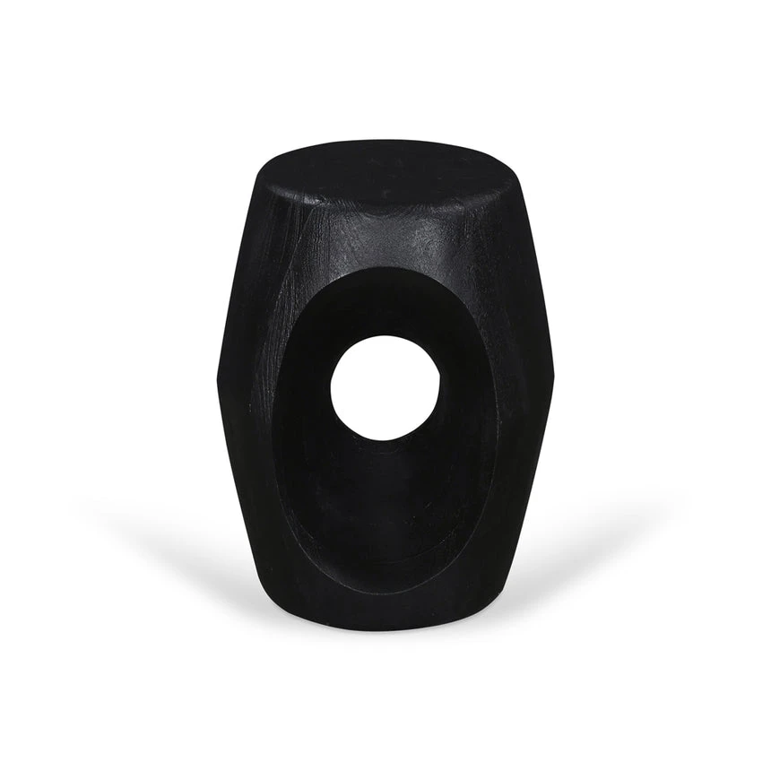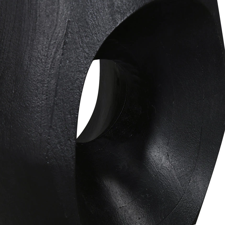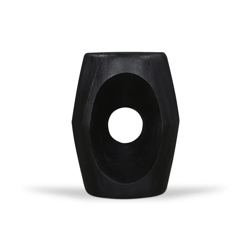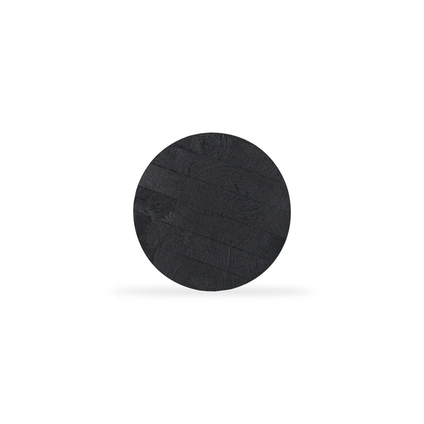 Mango wood construction Full black finish Wood grain patterns Hexagonal shape with central aperture Circular top for displays Weight Capacity: 10 kg Minor assembly required
