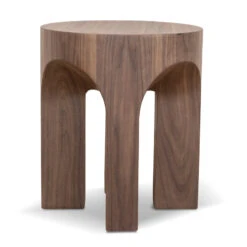 Fiberglass construction Elegant silhouette with curved arch detailing Rich wood grain patterns Compact yet functional design Ample surface space for decor Deep walnut finish Weight Capacity: 25 kg Product comes fully assembled
