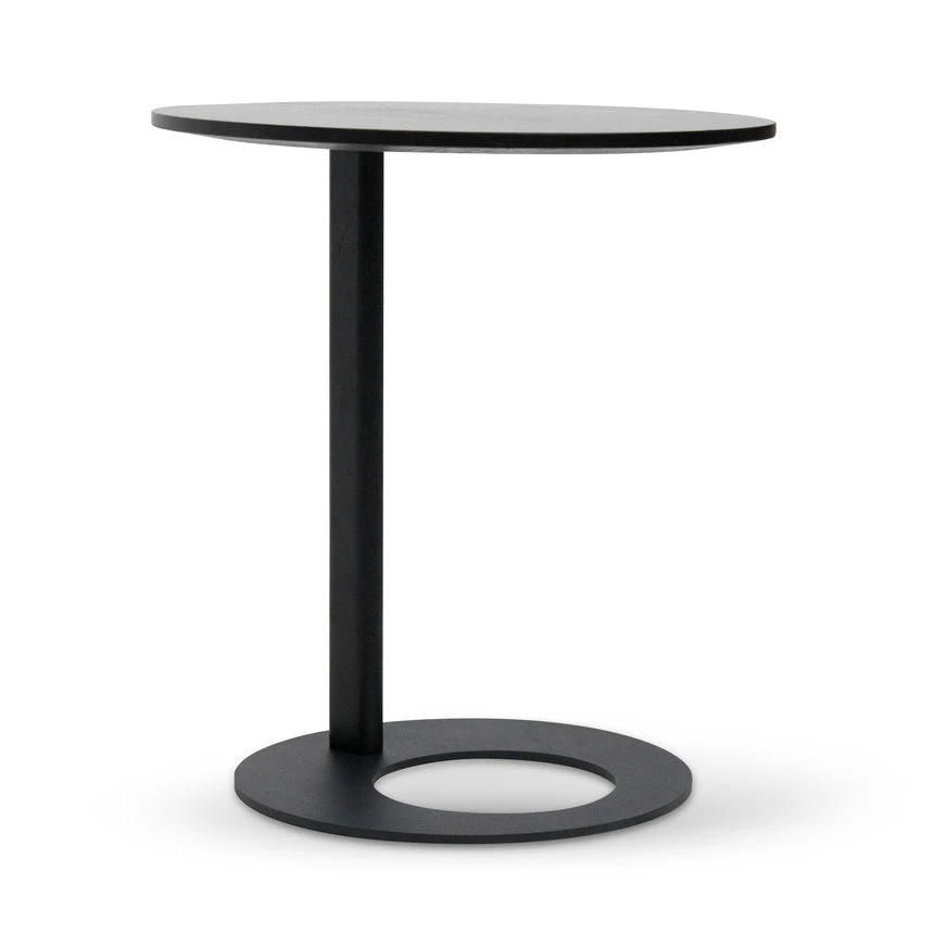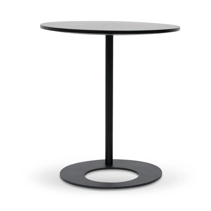 MDF Top with solid wood column Black Iron Frame Rounded metal Base 50kg weight capacity Minor Assembly Required