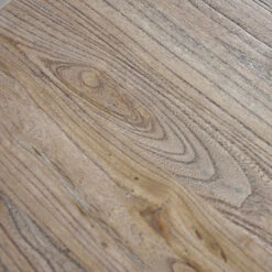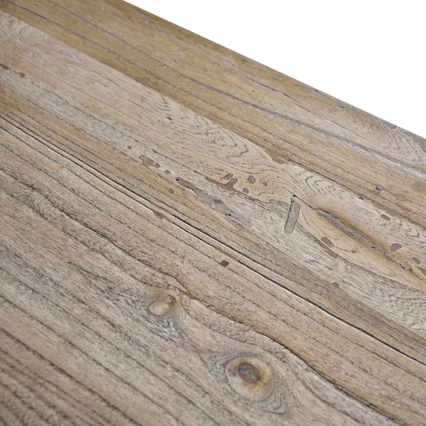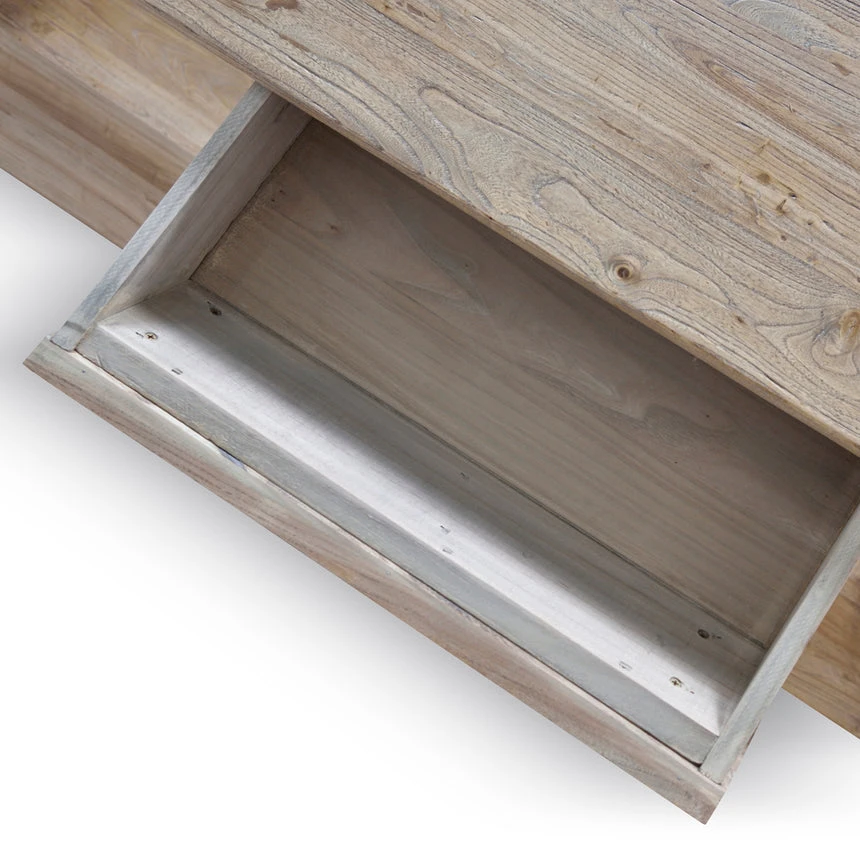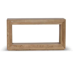 Reclaimed elm wood construction Natural finish Border-shaped frame 2 drawers for storage Rectangular top for displays Weight Capacity: 40 kg Product comes fully assembled