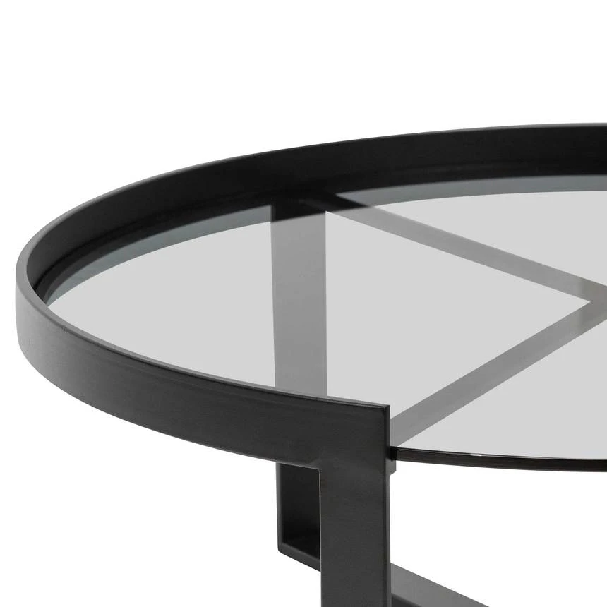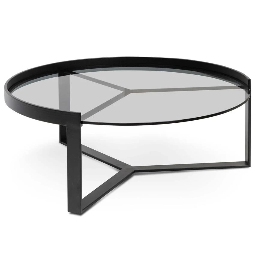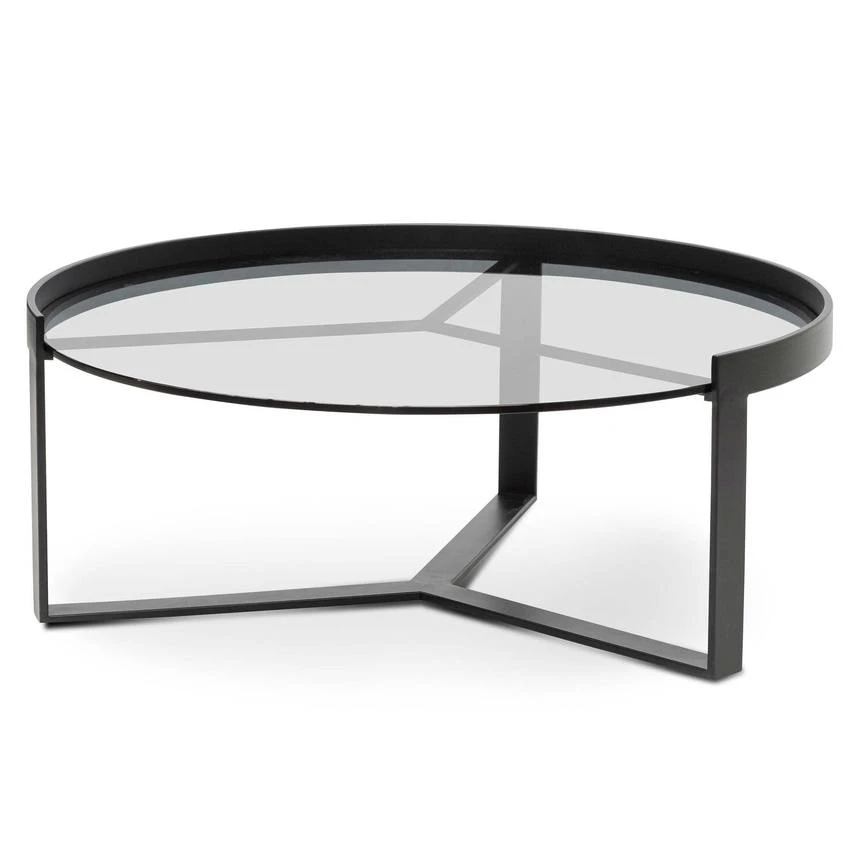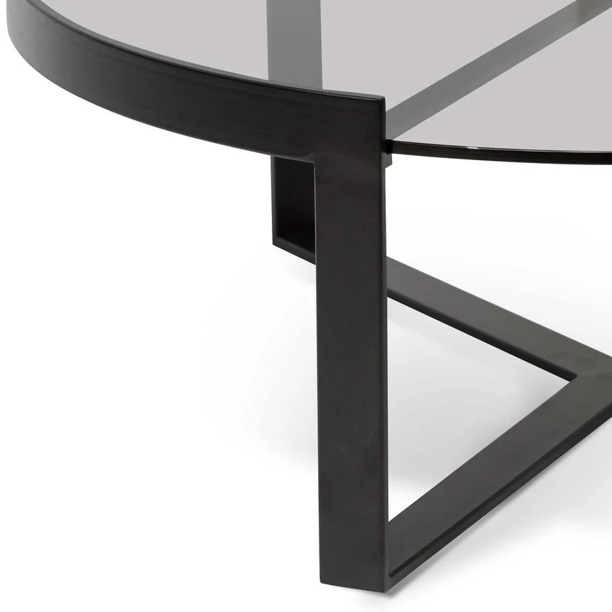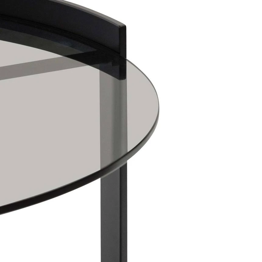 Elegant contemporary style Minimalist accent table Strong and sturdy black powder coated metal frame Round grey glass top