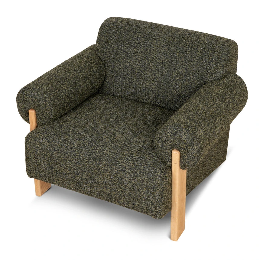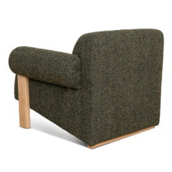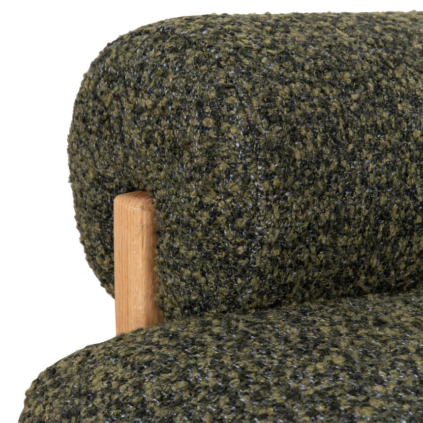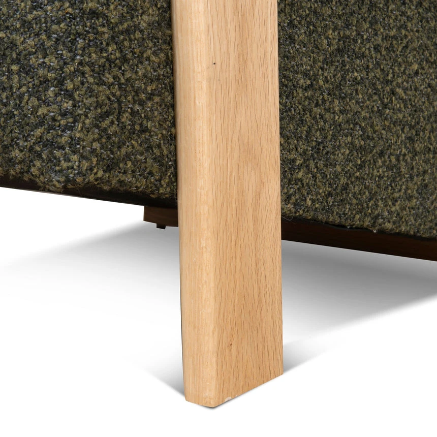 86% polyester, 9% acrylic, 5% cotton upholstery Oak wood frame and legs Spring suspension Foam-filled Soft-medium-firm seat Gently curved armrests and back Generously padded cushions Basil green color Weight capacity: 300 kg Fully assembled