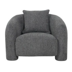 Coral Charcoal polyester upholstery Pinewood and plywood frame Medium seat firmness Web and spring suspension Rubber legs with floor protectors Contemporary and inviting look Weight Capacity: 120 kg Product comes fully assembled