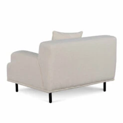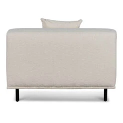Upholstered in an ivory white boucle fabric Fabric consists of a 54% polyester and 46% acrylic blend Internal pine wood construction High-density foam filling and spring and web suspension Iron legs in a matte black finish Medium-firm seating experience 1x matching scatter cushion included Minor assembly required