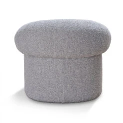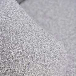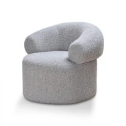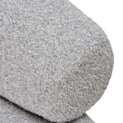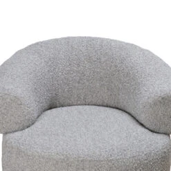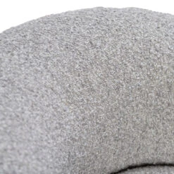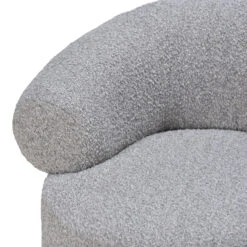 Light grey boucle polyester upholstery Pinewood construction Thick curved backrest Foam cushioning with web and spring suspension Circular base Sturdy legs Suitable for commercial use Weight Capacity: 100 kg Product comes fully assembled