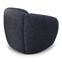 81% polypropylene and 19% polyester upholstery Pinewood frame construction Rubber legs Spring suspension system Foam filling with soft-medium seat firmness Rounded silhouette Concealed base Midnight Blue finish Weight Capacity: 120 kg Minor Assembly Required