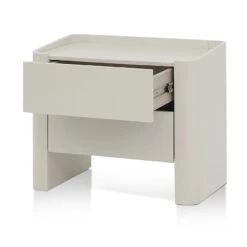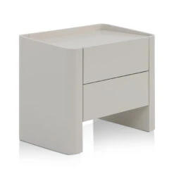 Sturdy engineered wood Light Grey Matte Painted Body 2 pull-out drawers Rounded edges, matte top Smooth metal drawer rails Weight Capacity: 50 kg Product is fully assembled
