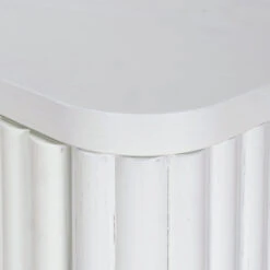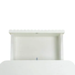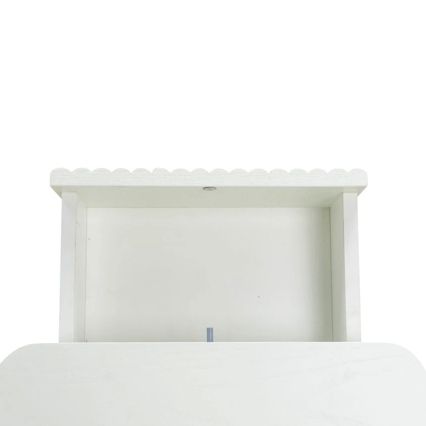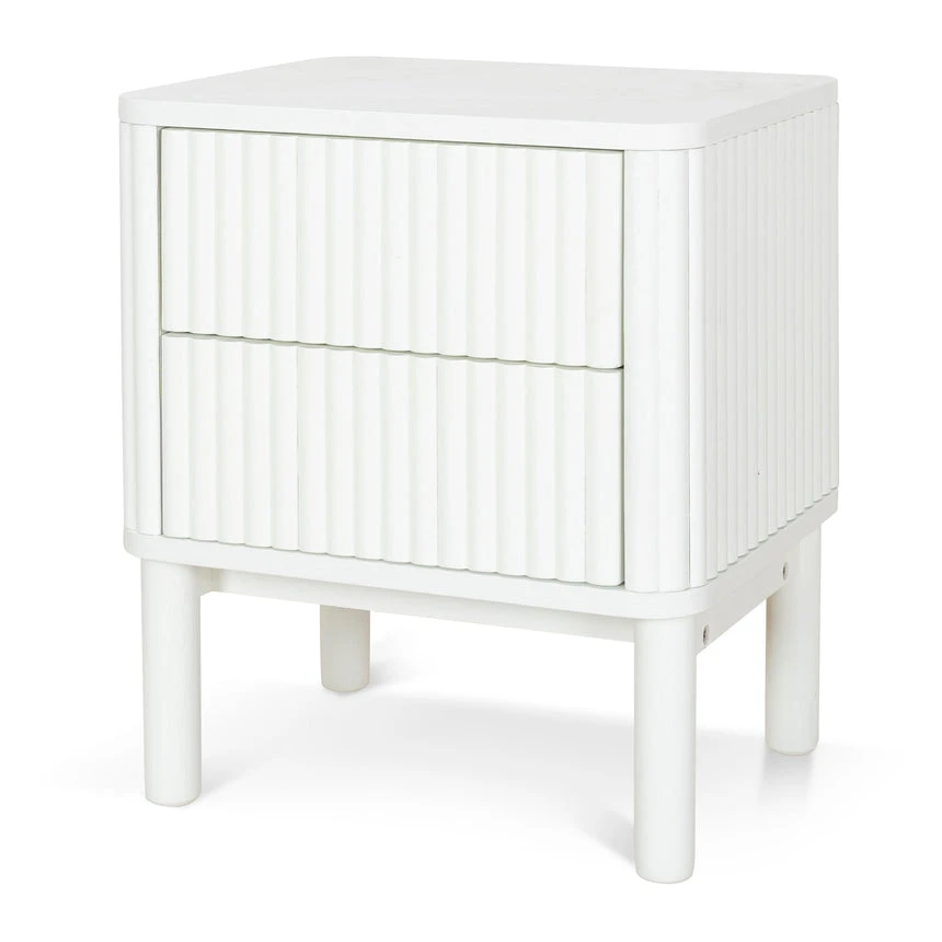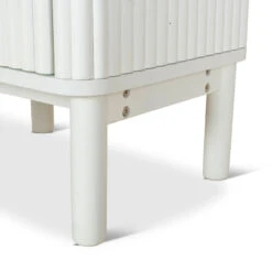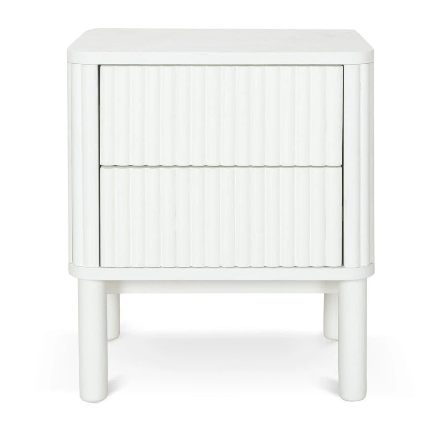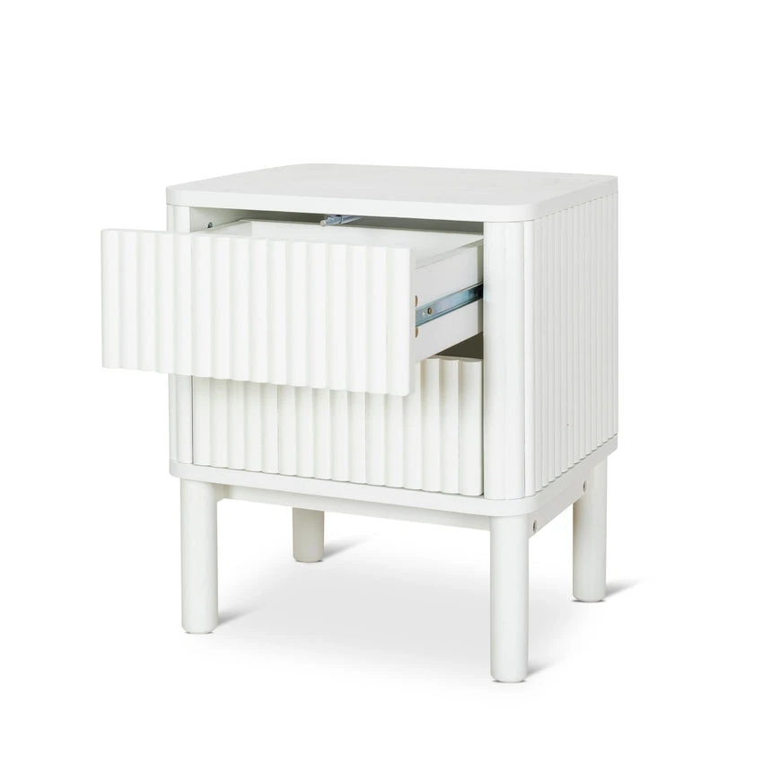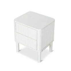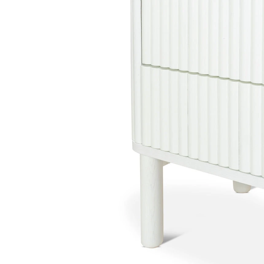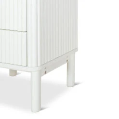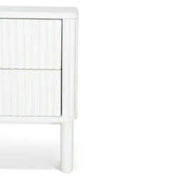 MDF construction in a white oak veneer finish White solid oak wood legs White finish with NC coating Two push-to-open drawers Weight Capacity: 60 kg Product comes flat pack and requires two-person assembly and a screwdriver Note: Please note that white tones may be affected by the lighting in the room.