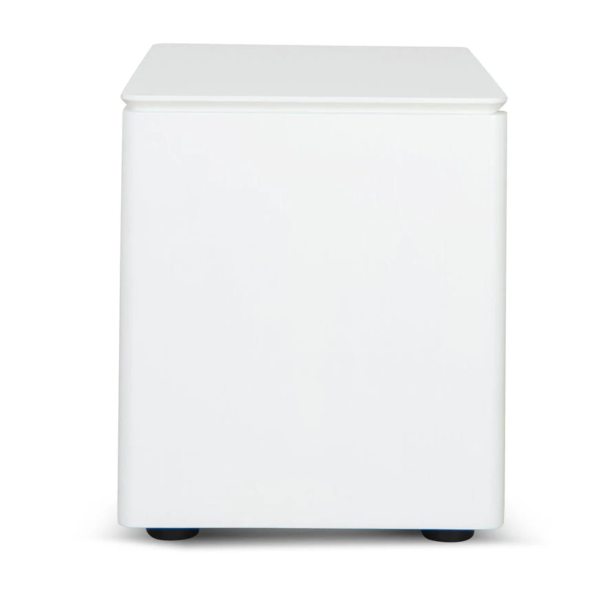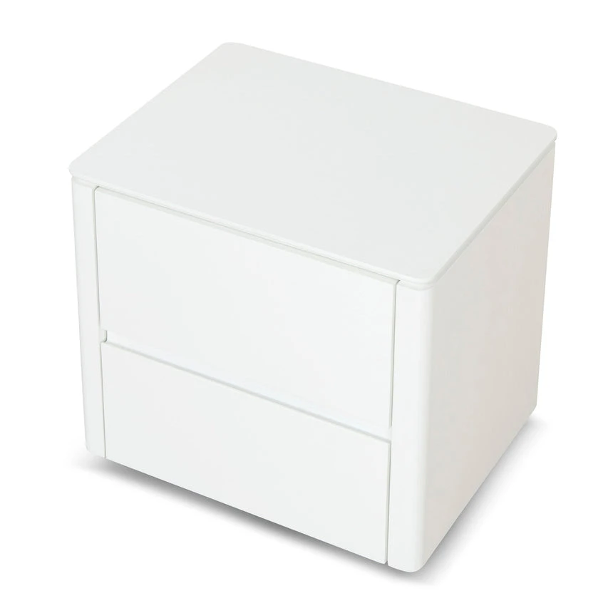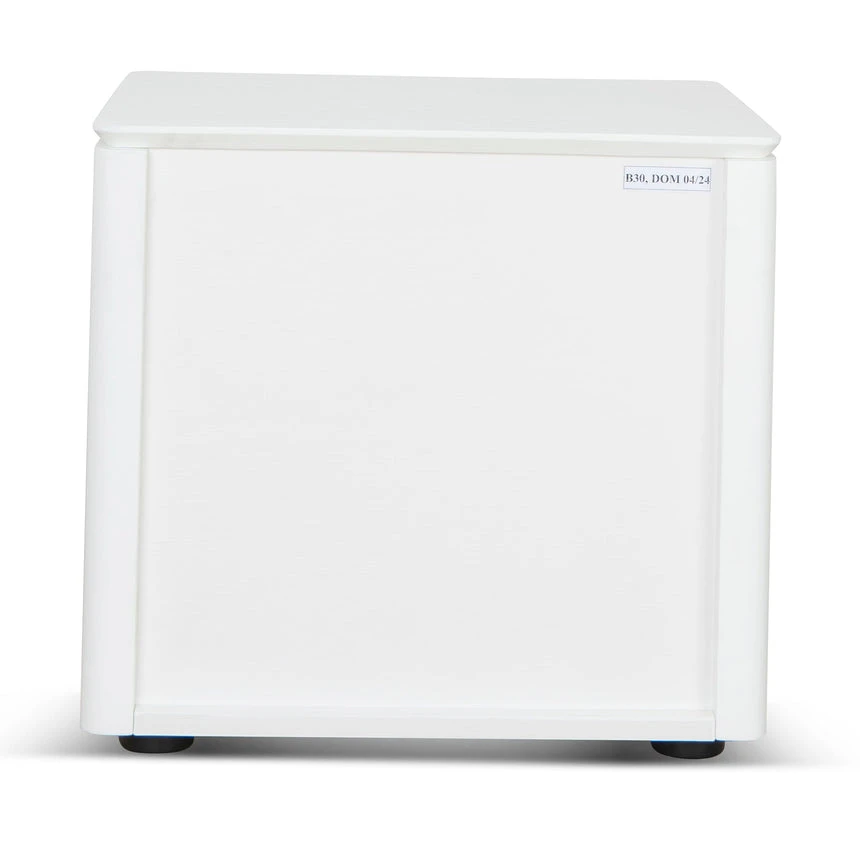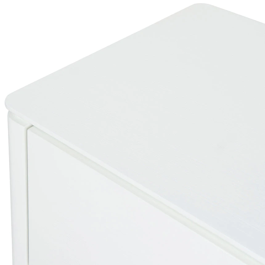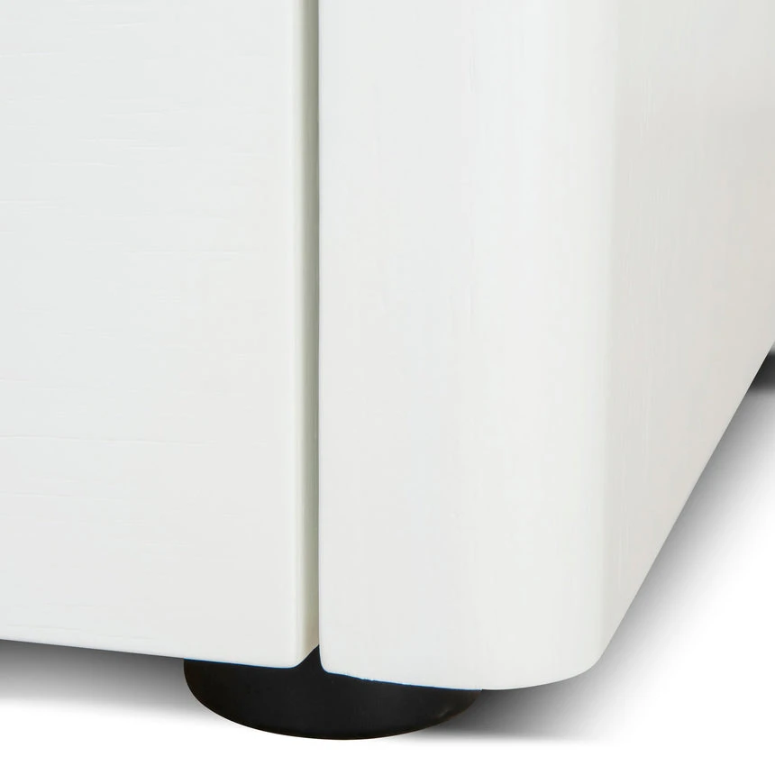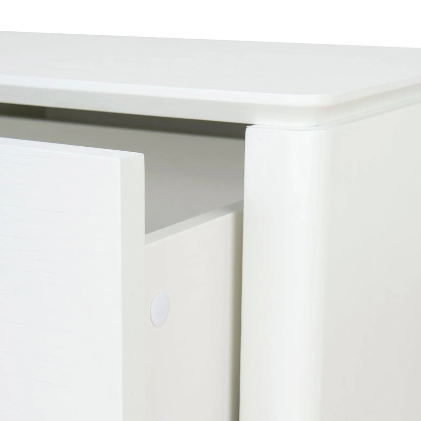 Engineered wood with veneer White oak veneer finish Pull-to-open drawers Minimalistic design Enhances bedroom aesthetics Rounded corners Weight Capacity: 40 kg Minor assembly required