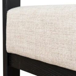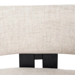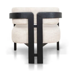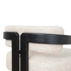 New elm frame and seat construction Linen upholstery Barrel back tripod frame in black finish Two sturdy flat front legs Interconnected rear legs Weight Capacity: 120 kg Minor assembly required