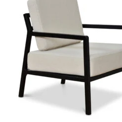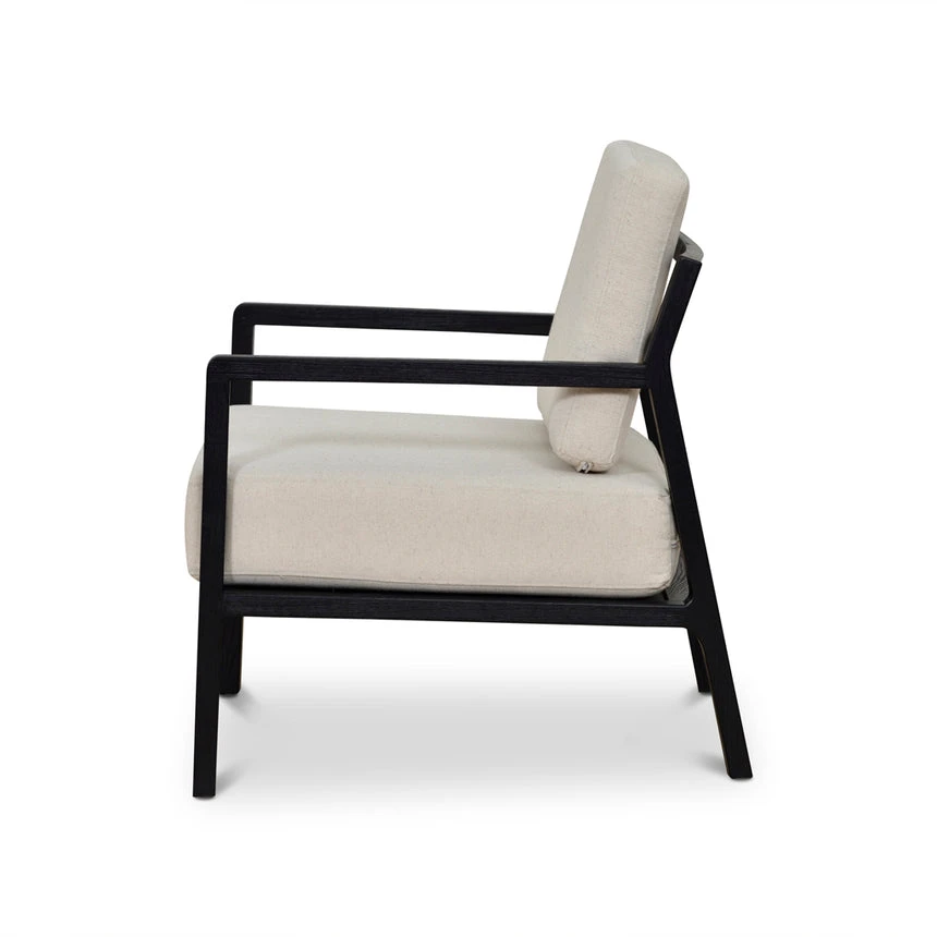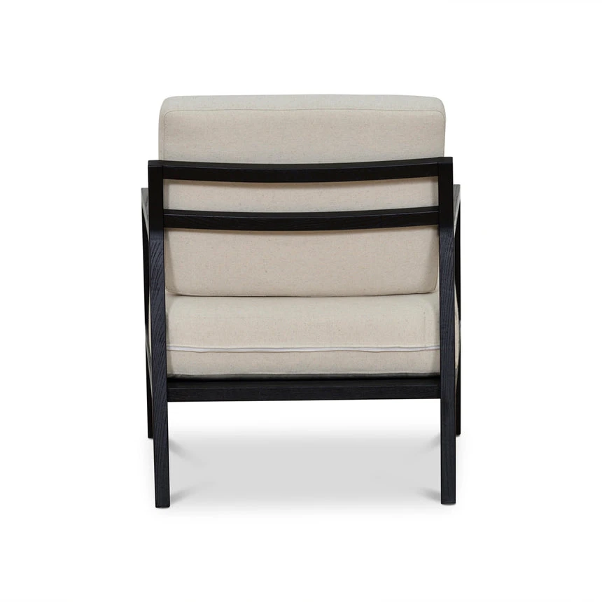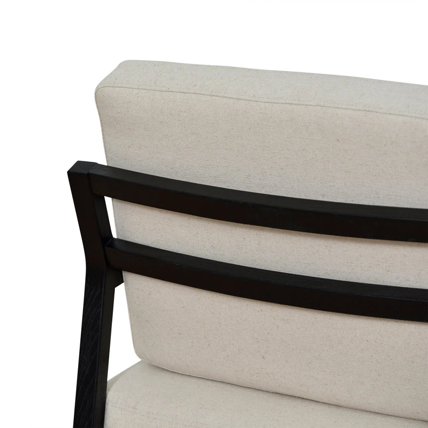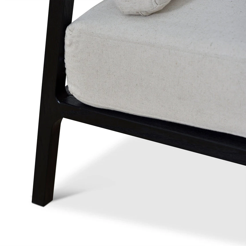 Upholstered in light beige fabric Fabric consists of 60% linen, 40% cotton Foam-filled cushions Oak wood frame Elm wood legs Detachable cushions Soft-medium seat firmness Square-shaped arm and backrest Suitable for commercial use Weight Capacity: 150 kg Product comes fully assembled