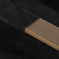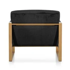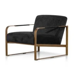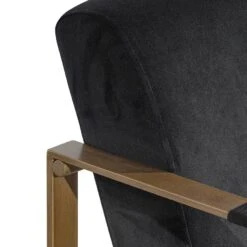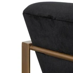 Seat and backrest in a black velvet upholstery Detailing and base in a brushed gold iron build High-density foam cushion insert Low-line tub chair in an angled position Includes armrest accent and sled base Feet protectors to prevent slipping and product damage 2-year warranty Product comes fully assembled