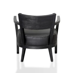 Cushion upholstered in black PU Wood backrest and frame Executive seat cushioning Slanted rear legs Powder black finishing Fully Assembled Note: Due to the characteristics of leather, natural imperfections and blemishes may occur and vary between individual products and naturally fade over time.