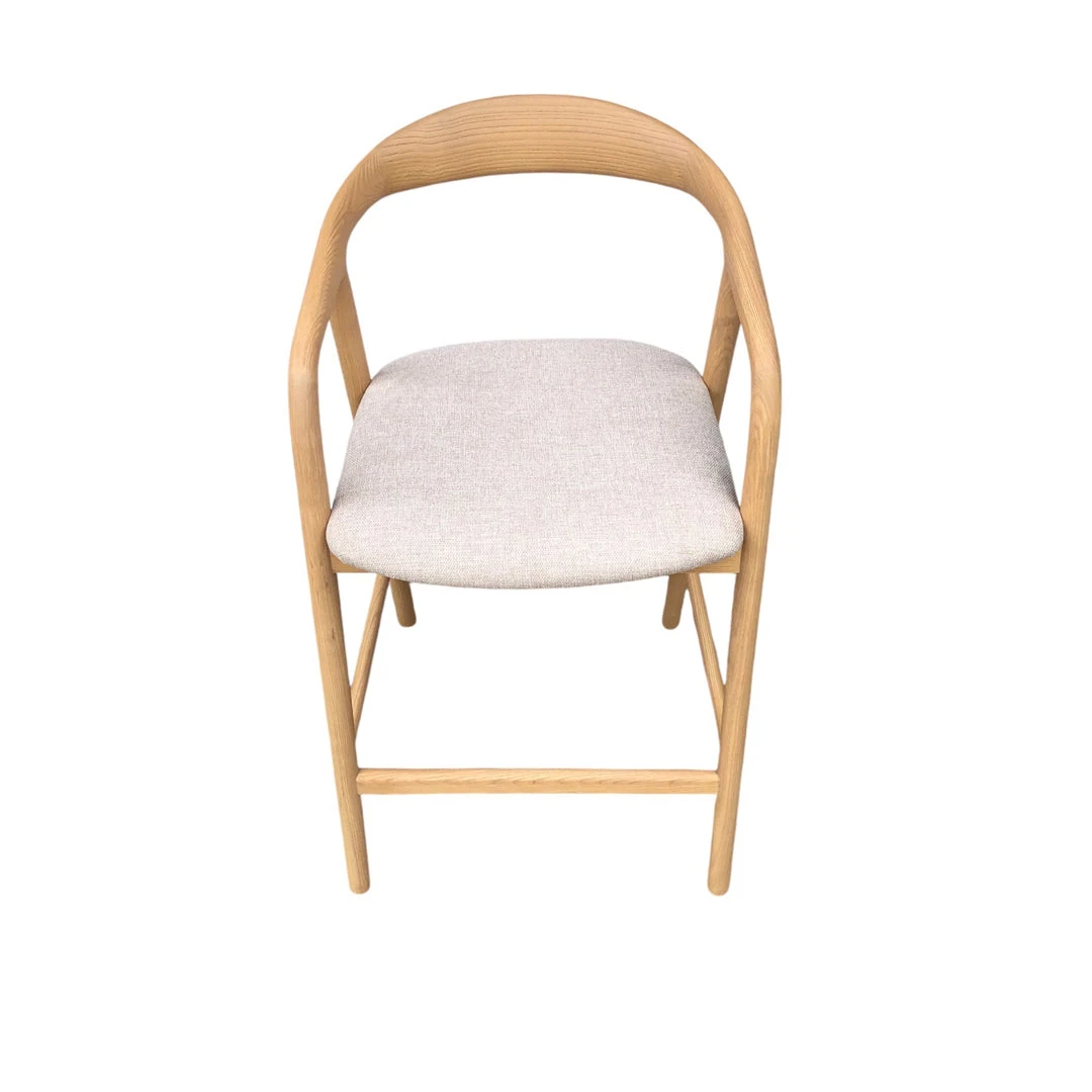Naxos Beige polyester upholstery Solid ash wood in a natural finish Finished with NC coating Tapered ash wood legs Curved backrest and soft edges Open-back design Foam filling Soft-medium seat firmness Weight Capacity: 150 kg Product comes fully assembled