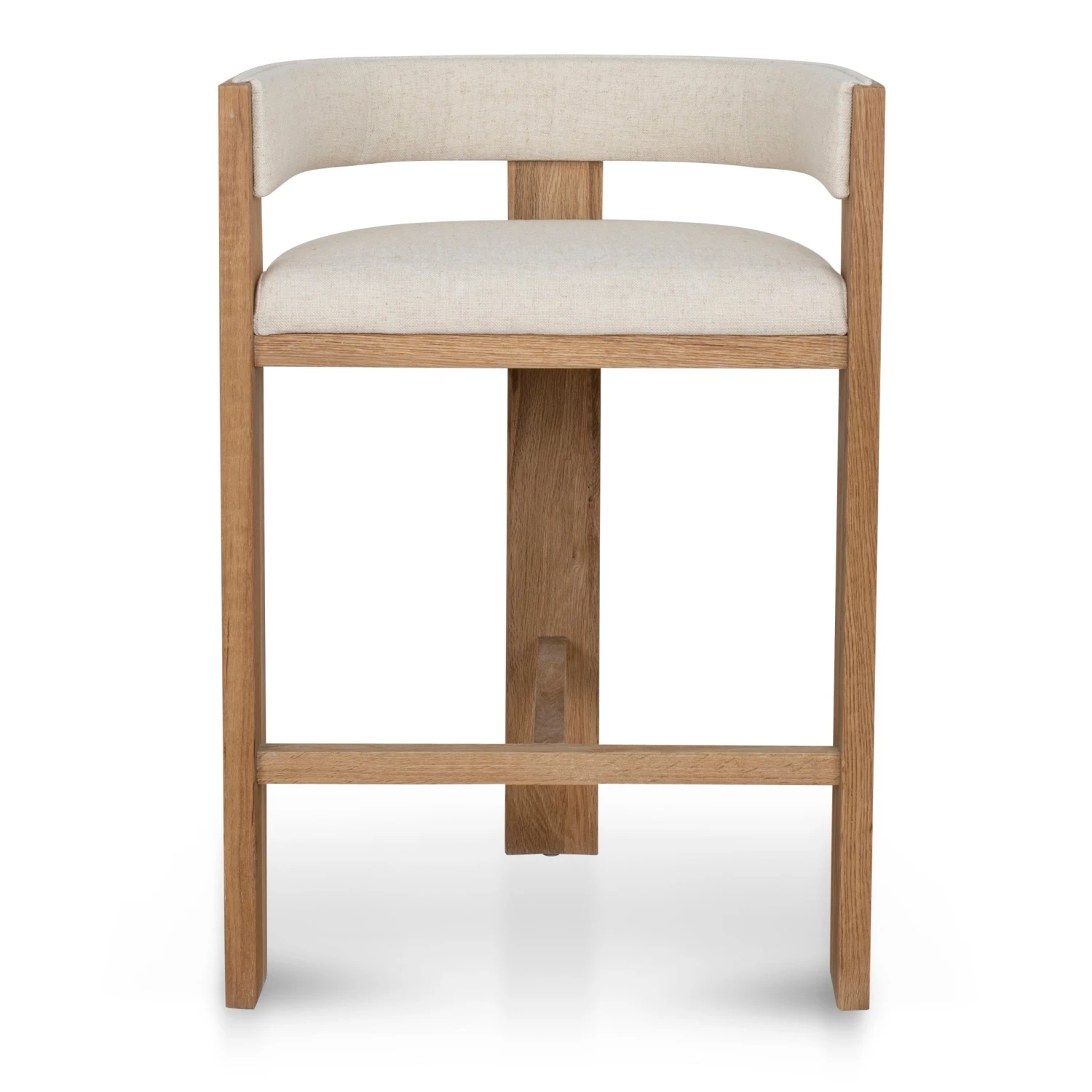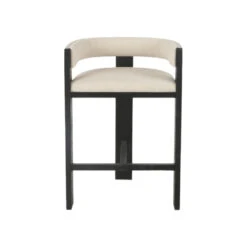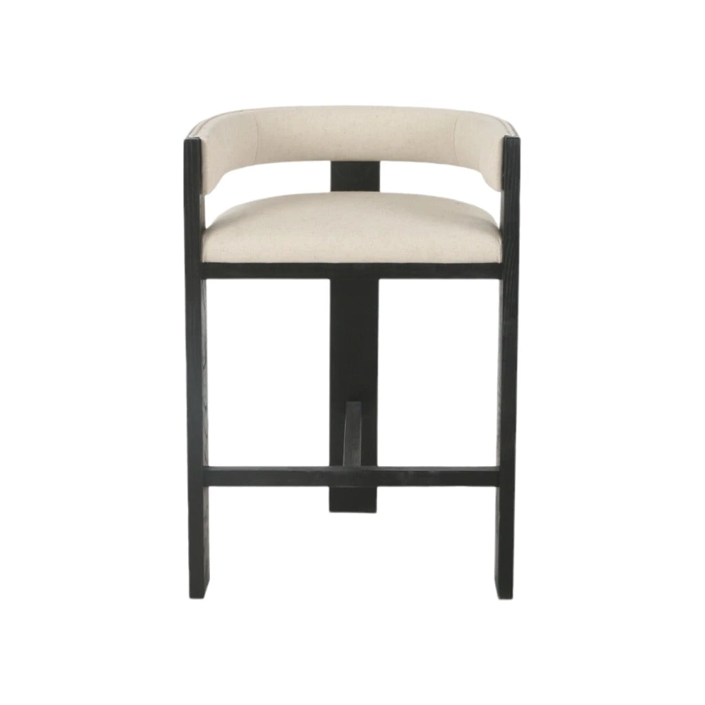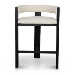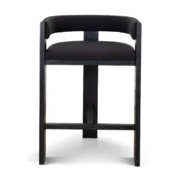 60% linen 40% cotton upholstery Elm timber construction Foam cushioning Full black finish Open-back design with wrap-around backrest Rectangular frame with built-in footrest Modern design Weight Capacity: 120 kg Product comes fully assembled