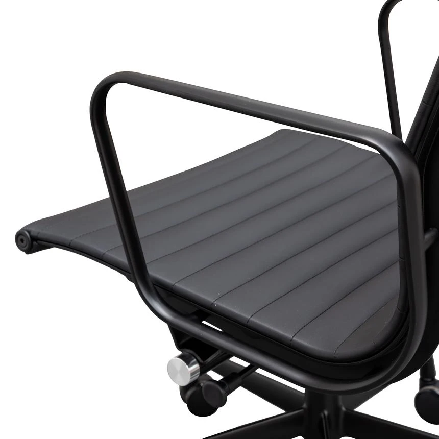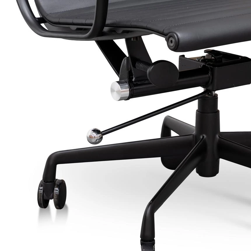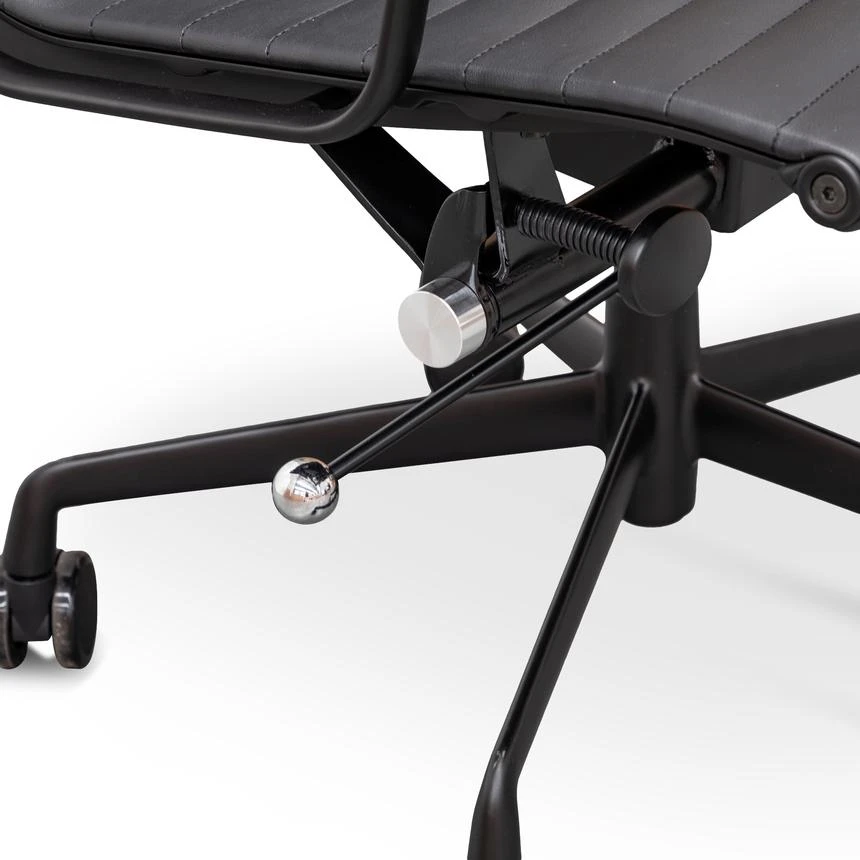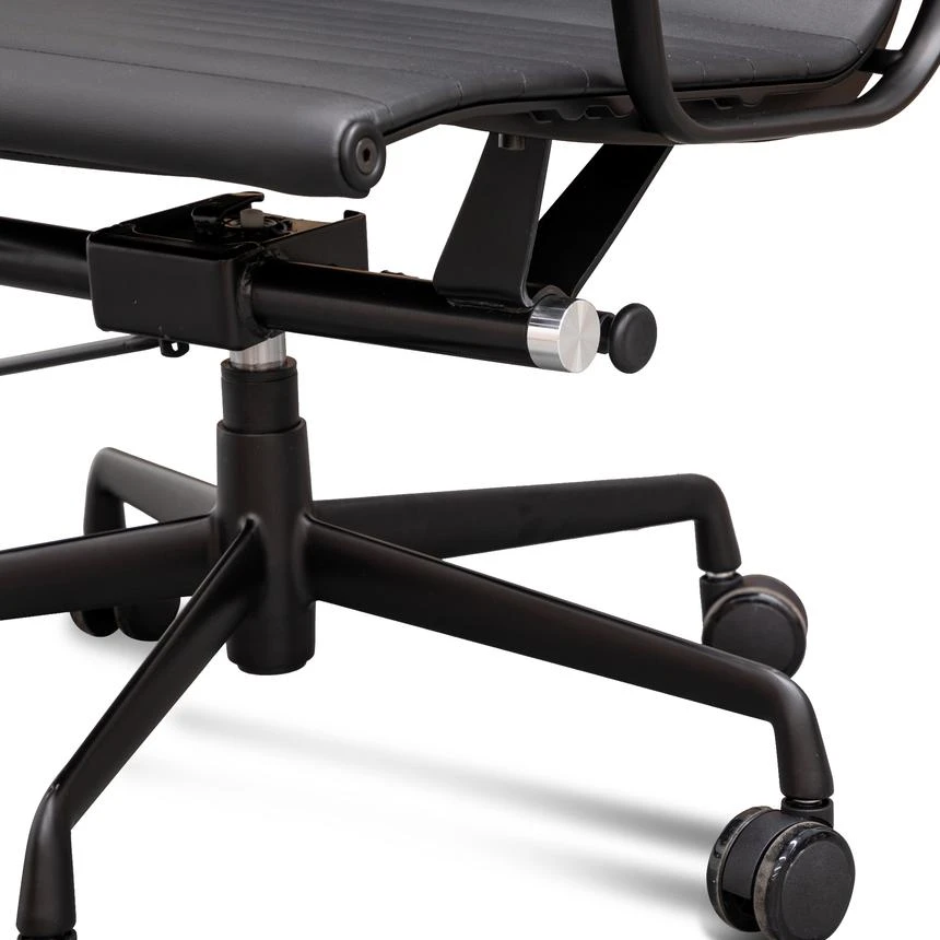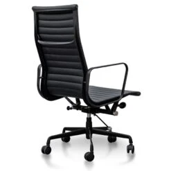 Upholstered in PU leather Steel frame, armrests and legs 360 degree swivel Adjustable gas-lift 1 year manufacturer’s warranty against defects Assembly required Note: This product is a thoughtful replica of Charles and Ray Eames’ iconic design and is not manufactured or affiliated with the original designer or distributor.