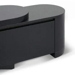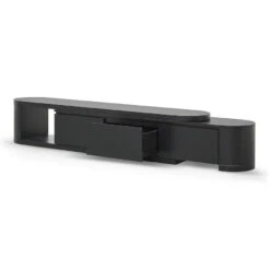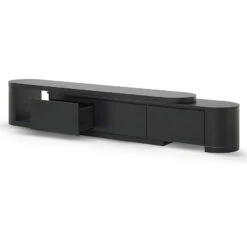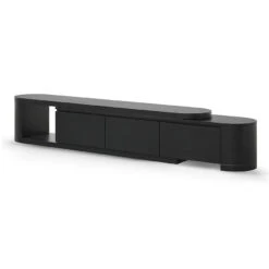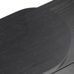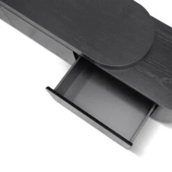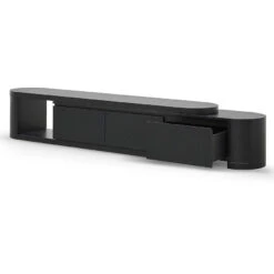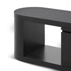 Engineered wood with black oak veneer Expandable unit Oval top with curved edges Natural wood textures Ample storage and display space 3x soft-close drawers with pull-open mechanism 3x cable management holes Weight Capacity: 80 kg Minor Assembly Required