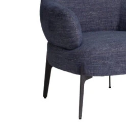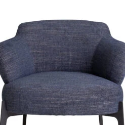 Celadon Blue polyester upholstery Plywood structure 30kg/m³ foam and polyester fiber filling Metal legs with grey powder-coated finish Soft curves and angular lines Rounded backrest Wide seat and arms Weight Capacity: 100 kg Minor assembly required
