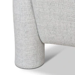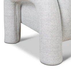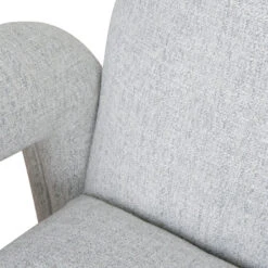 Cloud grey polyester upholstery Timber frame Web suspension Wooden legs Medium-firm seat support Foam cushioning Soft silhouette with curved armrests Oversized rounded legs Weight Capacity: 150 kg Product comes fully assembled