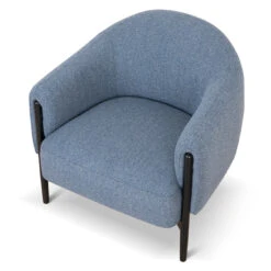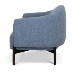 85% polyester, 15% wool upholstery Timber frame Dark grey-blue finish Medium-firm seat Foam-filled Wooden legs Web suspension Weight Capacity: 150 kg Product comes fully assembled