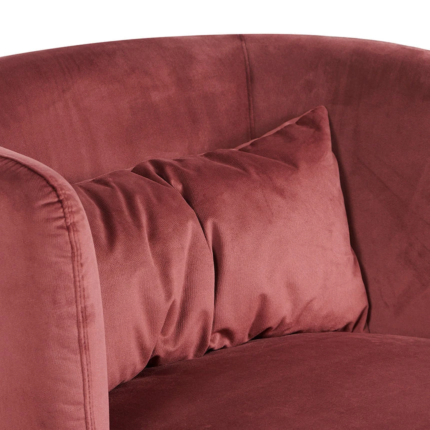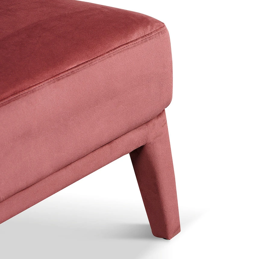 Durable plum fabric upholstery 95% polyester and 5% acrylic fabric Pinewood timber construction High density foam with web suspension Soft-medium seat firmness Flared and square tapered legs Weight capacity: 130 kg Product comes fully assembled