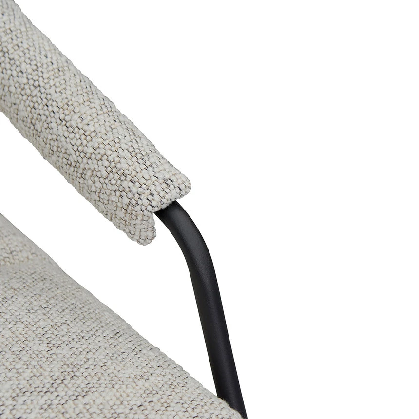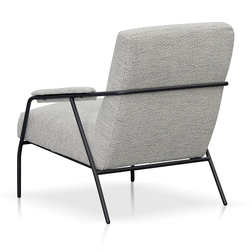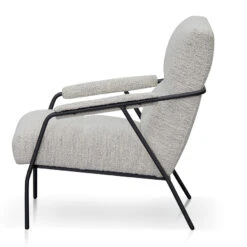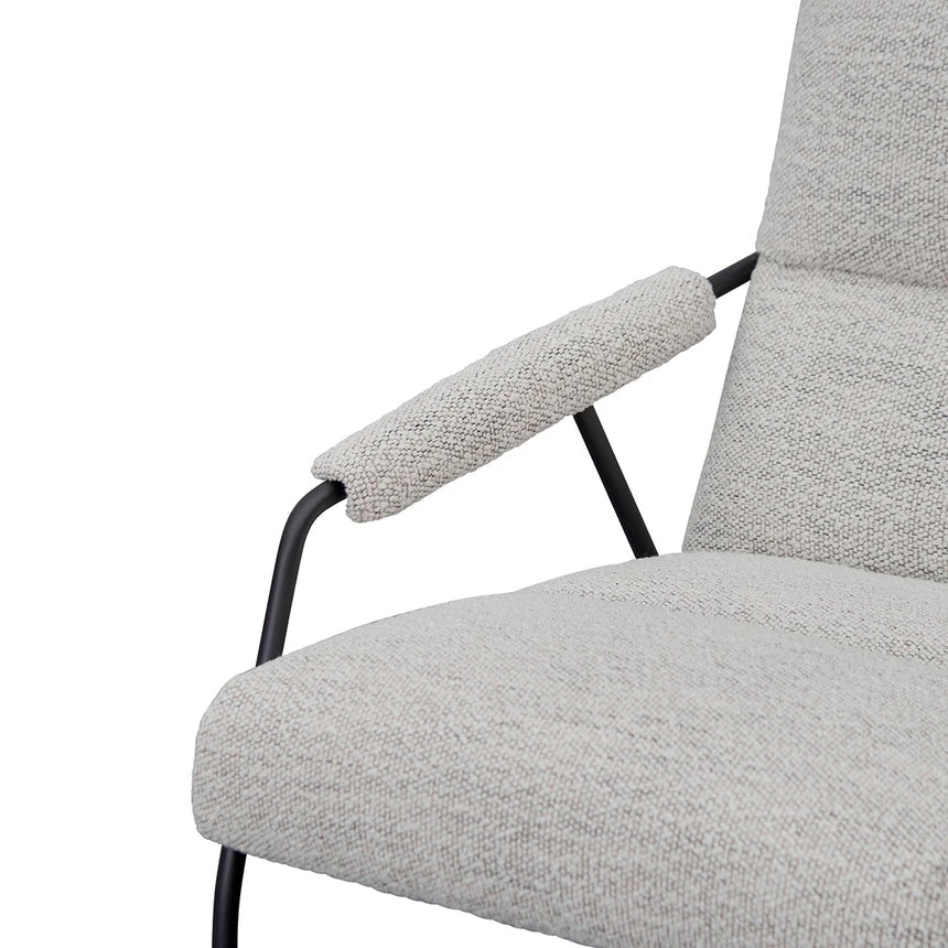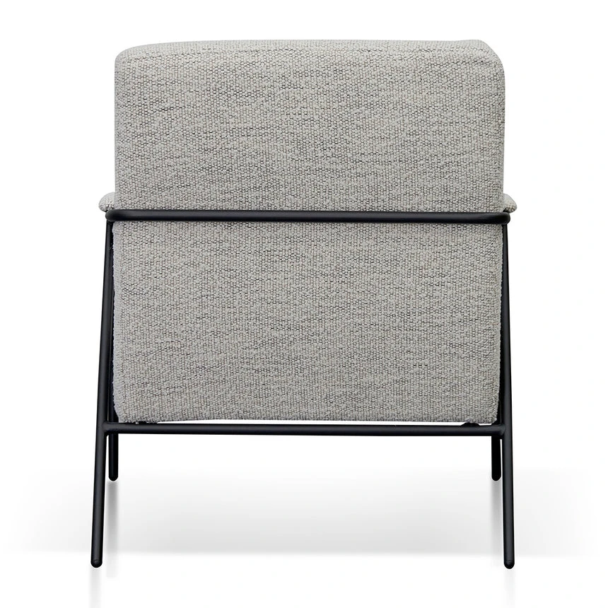 100% Polyester upholstery in fog grey Plywood and solid wood frame Thin black metal legs with floor protectors Raised side arms with padded upholstery Grooved back leaning backrest Foam and fiber filling with web-spring suspension Suitable for commercial use 120kg weight capacity Product is fully assembled