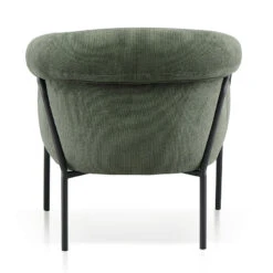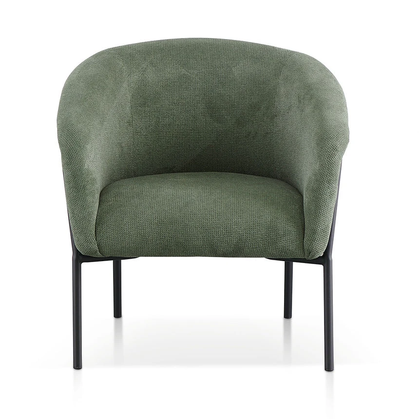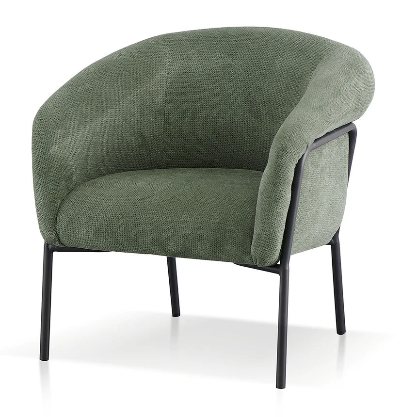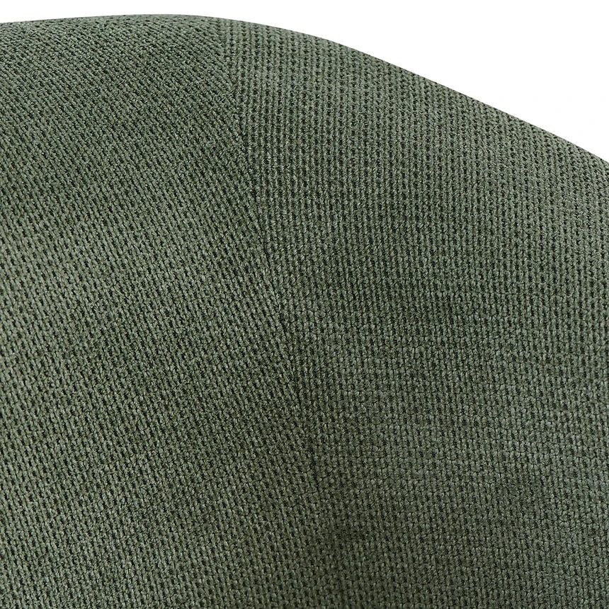 Mason Olive Green polyester upholstery Plywood timber frame Iron legs with floor protectors 1× cushioned seat with elongated side armrests Soft medium-firm foam filling Product is suitable for commercial use Weight Capacity: 120 kg Product is flat packed and requires 2-person assembly