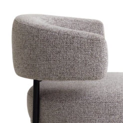 Mountain grey polyester upholstery M3 foam with polyester fiber filling Plywood frame structure Modern sleek design Semi-circular backrest Slim black powder-coated metal legs Weight capacity: 100 kg Minor assembly required