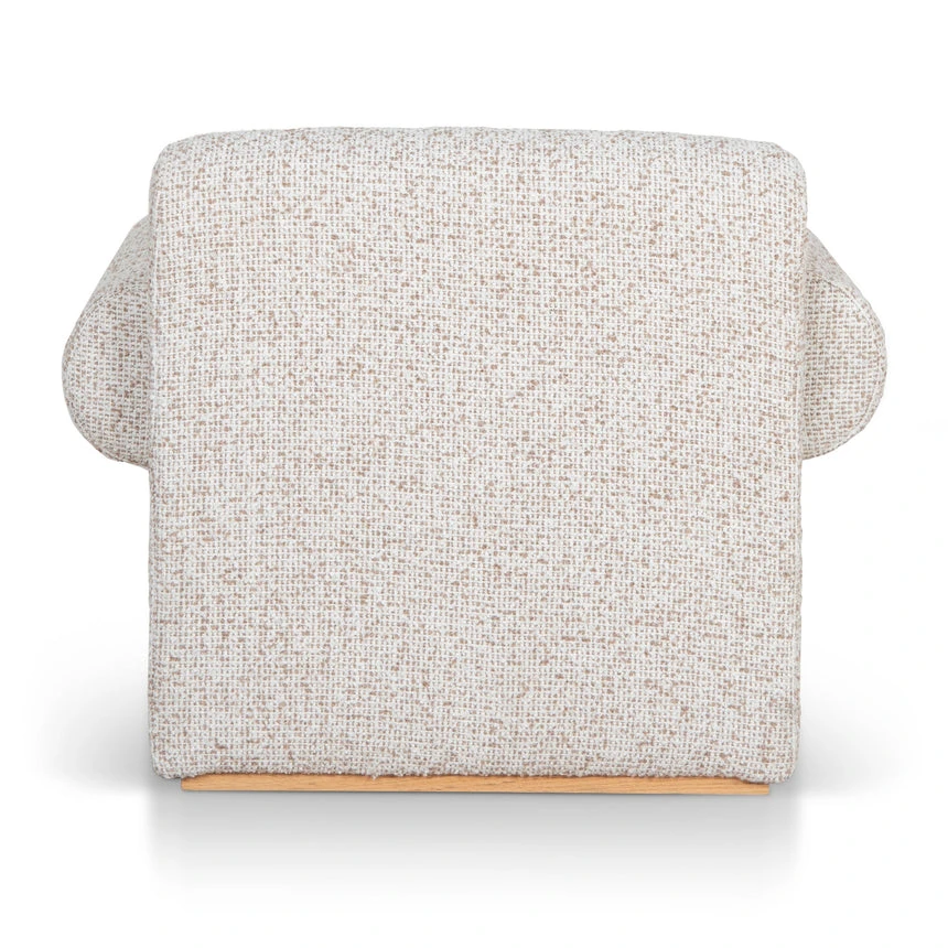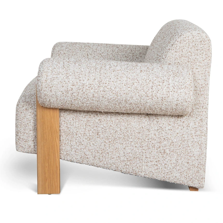 86% polyester, 9% acrylic, 5% cotton upholstery Oak wood frame and legs Spring suspension Foam-filled Soft-medium-firm seat Gently curved armrests and back Generously padded cushions Sand beige color Weight capacity: 300 kg Fully assembled
