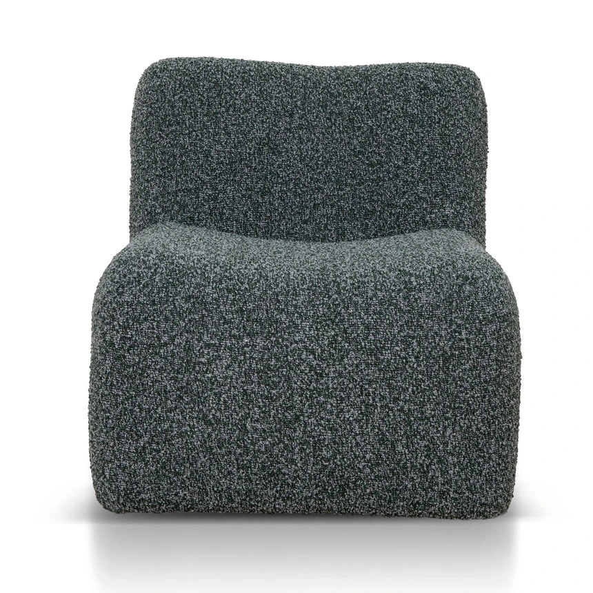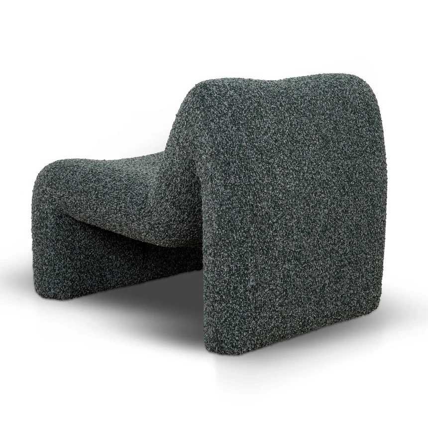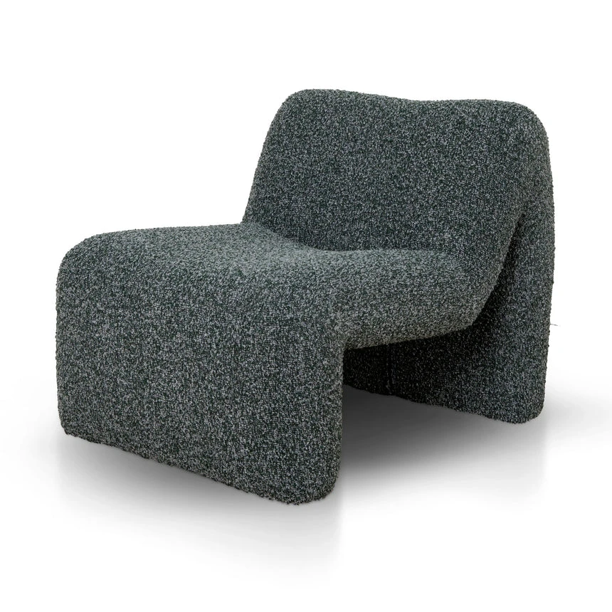 Green boucle polyester upholstery Pine wood frame Web and spring suspension Foam filling Soft-medium firmness Flowing shape design Smooth curved edges Weight capacity: 200 kg Minor assembly required