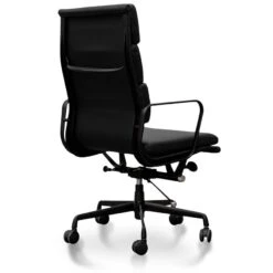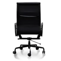 Upholstered in PU leather Steel frame, armrests and legs in a black finish 360 degree swivel Adjustable gas-lift 1 year manufacturer’s warranty against defects Assembly required Note: This product is a thoughtful replica of Charles and Ray Eames’ iconic design and is not manufactured or affiliated with the original designer or distributor.