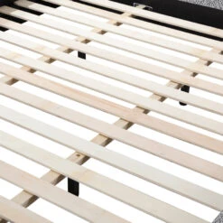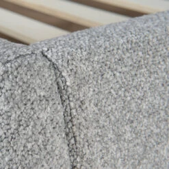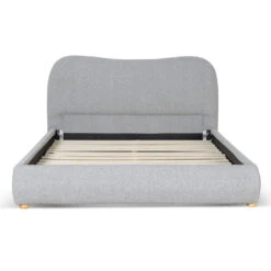 Storm grey upholstery Engineered wood construction Foam and fabric filling Wave-like curved headboard Smooth, seamless lines Electric screwdriver required Weight Capacity: 400 kg Requires two-person assembly Notes: Bed mattress not included