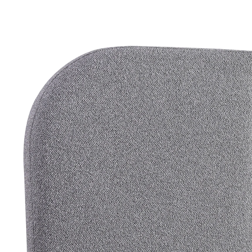 Storm grey fabric upholstery Engineered wood construction Padded surface Sturdy framework Minimalist design Rounded corners Versatile style Product comes fully assembled