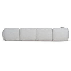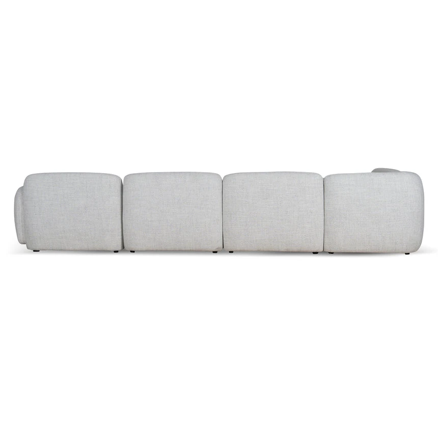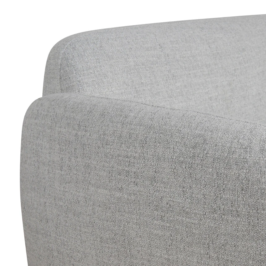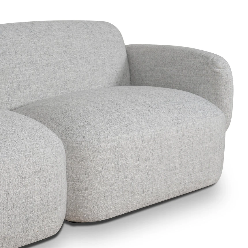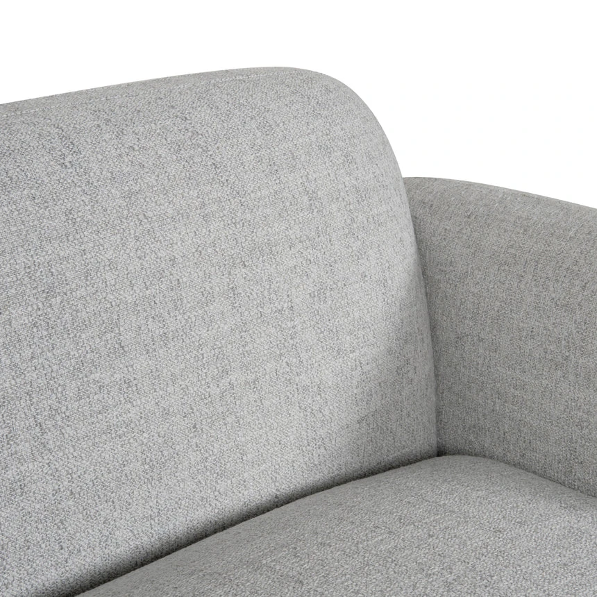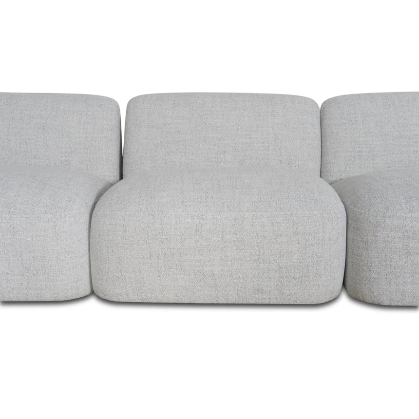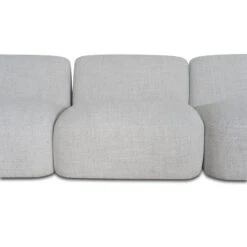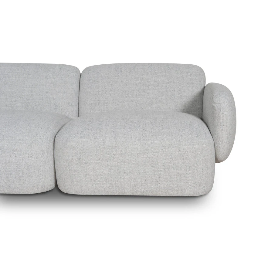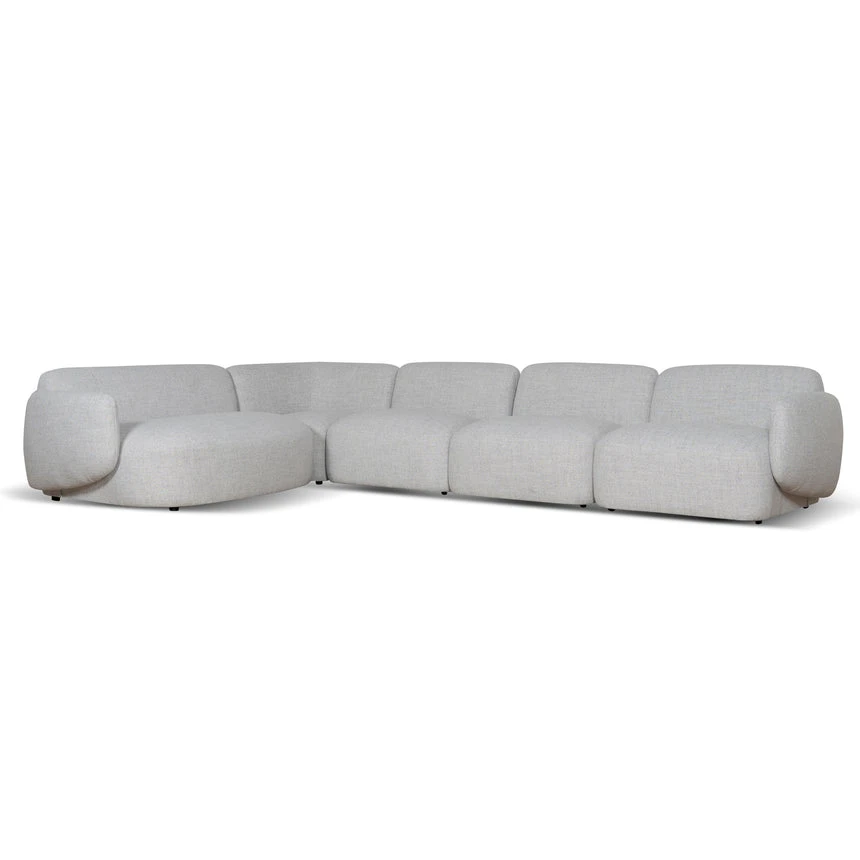 Cloud grey polyester upholstery Durable plywood and solid wood frame Left chaise configuration Foam and fiber blend cushion Web and spring suspension Rounded padded armrests Clean lines and soft curves Easily rearrange the sections to fit your space Rubber legs Soft seat firmness Weight Capacity: 620 kg Product comes fully assembled