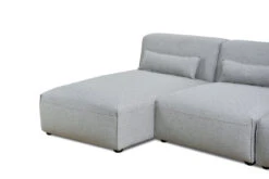 Sterling sand polyester upholstery Pine wood frame Rubber legs Left chaise formation Foam and feather filling with spring suspension Soft-medium seat firmness Suitable for commercial use Weight capacity: 500 kg Minor assembly required