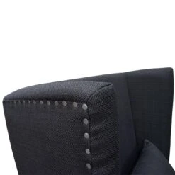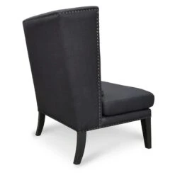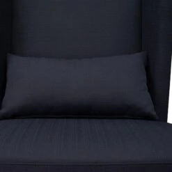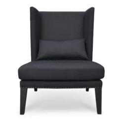 Quality black fabric upholstery for a classic colour palette Robust and stable wood legs in a black finish Generously deep seat and tall back with wings for ultimate comfort Versatile shape and colour to complement modern spaces Matching cushion included