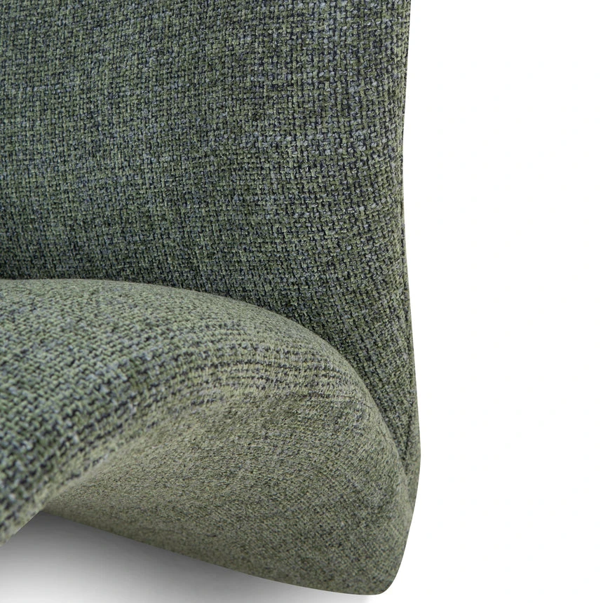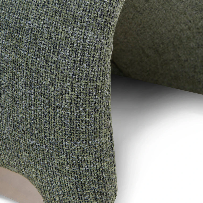 Polyester fabric upholstery Pine wood frame Metal legs Moss Green colour Web suspension Soft-medium seat Foam filling Curvaceous seat and backrest Weight Capacity: 200 kg Minor assembly required