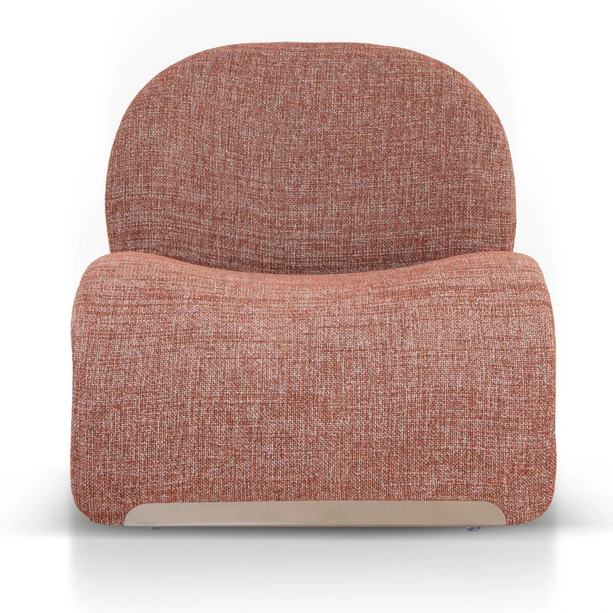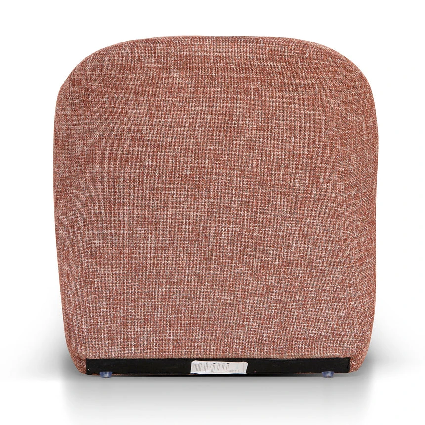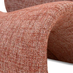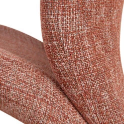 Polyester fabric upholstery Pine wood frame Metal legs Moss rust orange colour Web suspension Soft-medium seat Foam filling Curvaceous seat and backrest Weight Capacity: 200 kg Minor assembly required