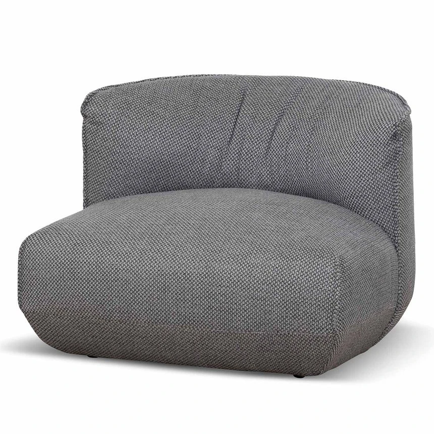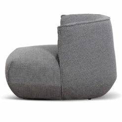 Upholstered in a noble grey fabric Fabric consist of 78% polyester, 12% cotton, 8% viscose and 2% acrylic blend Constructed from timber pine wood and polypropylene base Elastic ribbon suspension and foam and feather insert Soft-medium seating firmness Product comes fully assembled