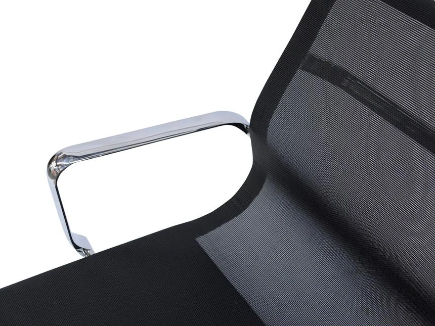 Low back Upholstered in premium commercial grade elastomeric mesh Polished chrome five star leg base and arm rests Simple assembly required 1 year manufacturer’s warranty against defects Note: This product is a thoughtful replica of Charles and Ray Eames’ iconic design and is not manufactured or affiliated with the original designer or distributor.