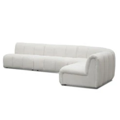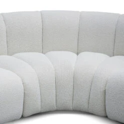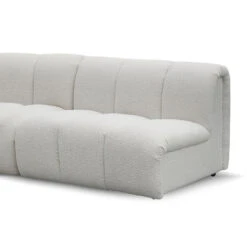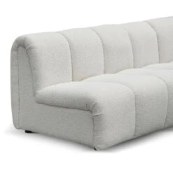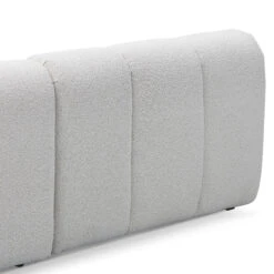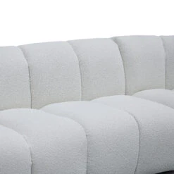 Upholstered in a durable Pearl Boucle finish Fabric consists of 100% Polyester Frame is made of sustainably sourced Pine wood Pine wood legs equipped with non-skid floor protectors Channel back and channel seat in modular style Foam filling with retained web-spring suspension Soft-medium seat firmness Suitable for commercial use Distributed weight capacity of 800kg Fully assembled
