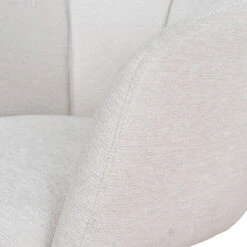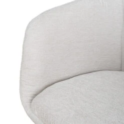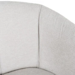 Bright grey polyester upholstery Iron frame and legs Foam filling Soft-medium seat firmness Softly curved silhouette with vertical stitching Sloped barrel-shaped backrest 360° swivel Weight Capacity: 200 kg This product is supplied flat-packed and requires assembly by two people