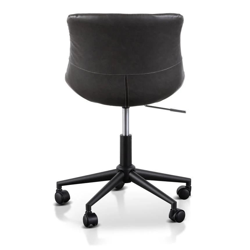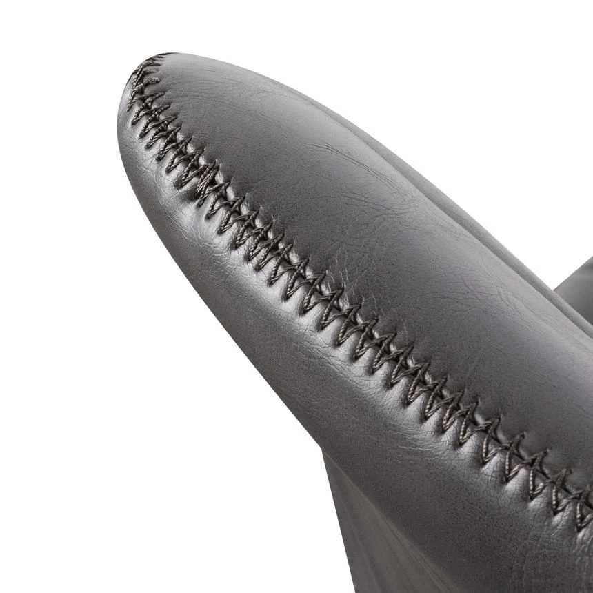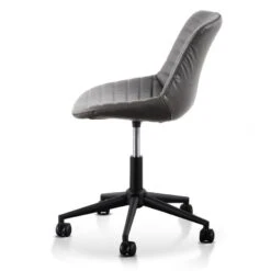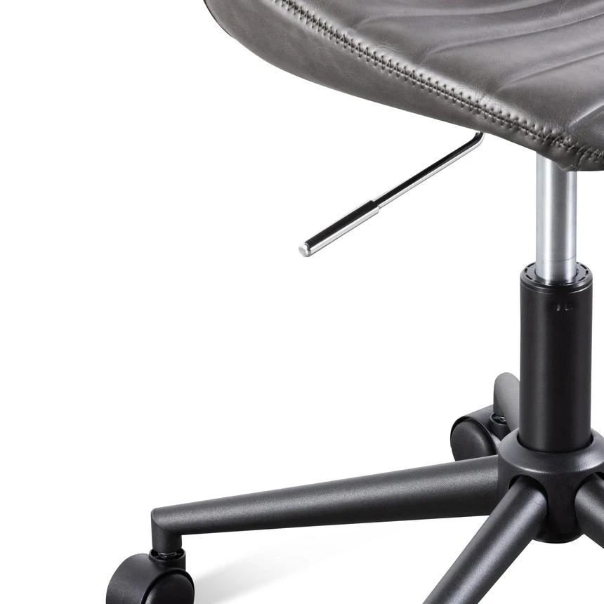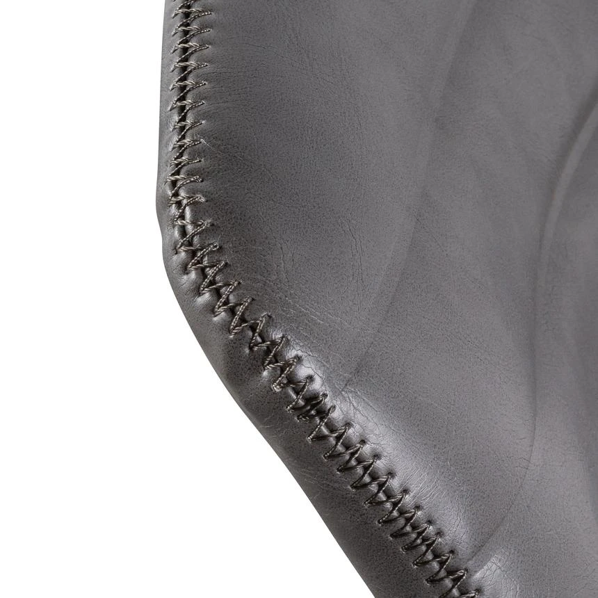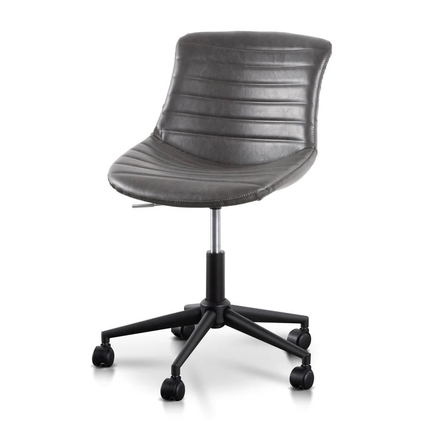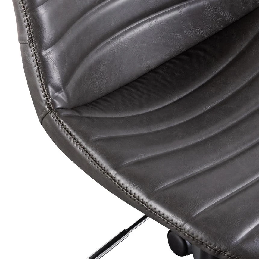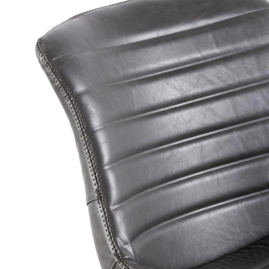 Durable charcoal PU upholstery with horizontal channel tufting Moulded and contoured polypropylene frame and detailing Moulded polywood seat with premium foam insert Heavy duty nylon castor wheels in powder black 360 degree swivel with adjustable gas-lift seat height Product is flat packed and requires two-man assembly