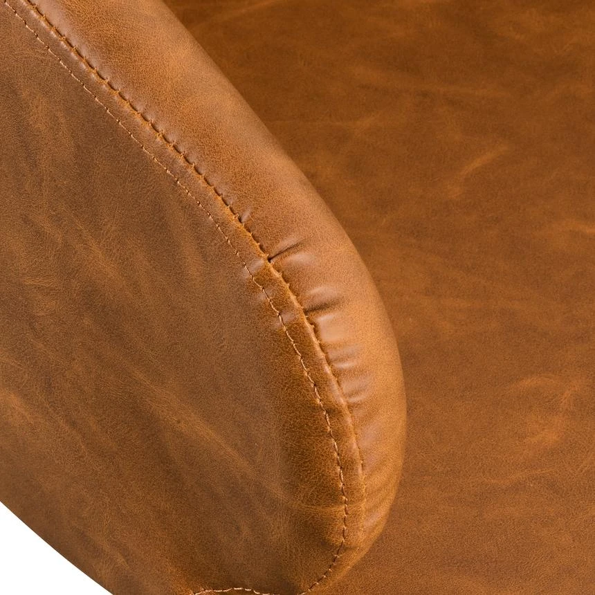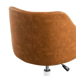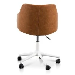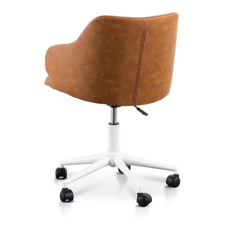 PU upholstery in tan finish Back and detailing in durable polywood construction Moulded polywood seat with premium foam insert Heavy duty nylon castor wheels with white base Tub shaped chair with waterfall seat design 360 degree swivel with adjustable gas-lift seat height Product is flat packed and requires two-man assembly