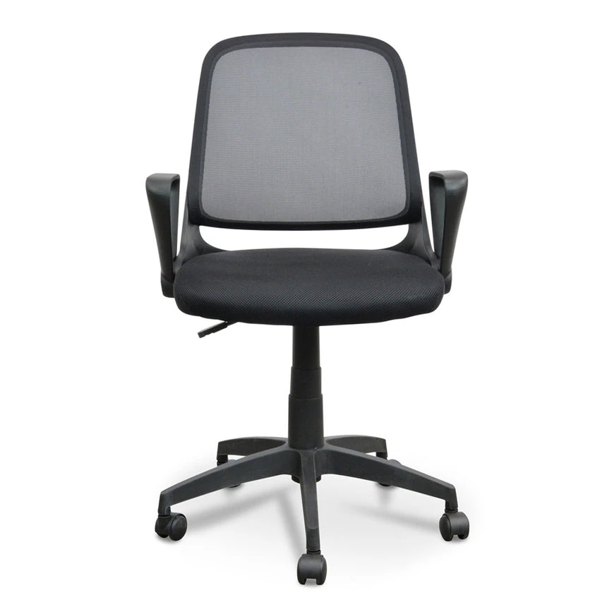 Comfortable backrest crafted from mesh for flexible support and breathability Thick seat pad features high-quality fabric for durable good looks and easy maintenance Seat height is adjustable to position you at the level you’re comfortable with Loop armrests are sturdily constructed to offer support for years to come Wheeled five-star base provides freedom of movement around your desk space Modern, understated design is so versatile it will blends with ease in most office spaces