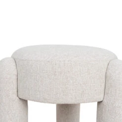 86% polyester, 9% acrylic, 5% cotton upholstery Plywood frame and legs Spring suspension Foam filling Medium seat firmness Coastal beige color Rounded pillowy legs Compact circular seat Unique form and texture Weight Capacity: 200 kg Minor assembly required