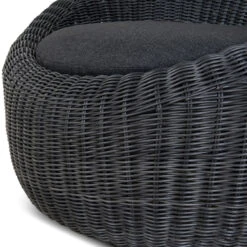 Introducing the Outdoor Lounge Chair – Full Black, the perfect addition to your outdoor space. This sleek and modern chair features a full black polyester upholstery that is both stylish and durable. The aluminum frame and legs provide a sturdy base, while the foam and fiber polyester filling offer a comfortable seating experience. Designed with a protective inner cover, this chair is built to withstand the elements and maintain its quality over time. The soft-medium seat firmness makes it ideal for lounging and relaxing. Its compact size makes it perfect for small spaces or as an accent chair in any outdoor setting. The cocoon-like structure of this chair adds a touch of elegance to your outdoor decor. The woven rattan with a textured finish adds a natural and rustic element to the design. With a weight capacity of 120 kg, this chair is suitable for all body types. No assembly is required for this product, making it hassle-free and ready to use. Its dimensions of 96cm (W) x 89cm (D) x 73.5cm (H) and seat dimensions of 55cm (W) x 49cm (D) x 30cm (H) make it a comfortable and practical choice for any outdoor space. Upgrade your outdoor seating with the Outdoor Lounge Chair – Full Black.
