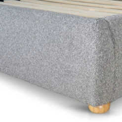 Storm grey polyester upholstery Engineered wood frame Foam fabric filling Modern design Soft rounded corners Sculpted headboard Electric screwdriver recommended Weight Capacity: 350 kg Requires two-person assembly Notes: Bed mattress not included