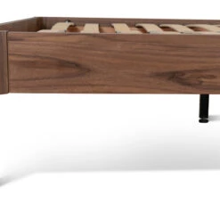Engineered wood construction Solid wood legs Gently curved headboard Walnut finish Sophisticated design Sleek minimalist aesthetic frame Weight Capacity: 180 kg Requires two-person assembly